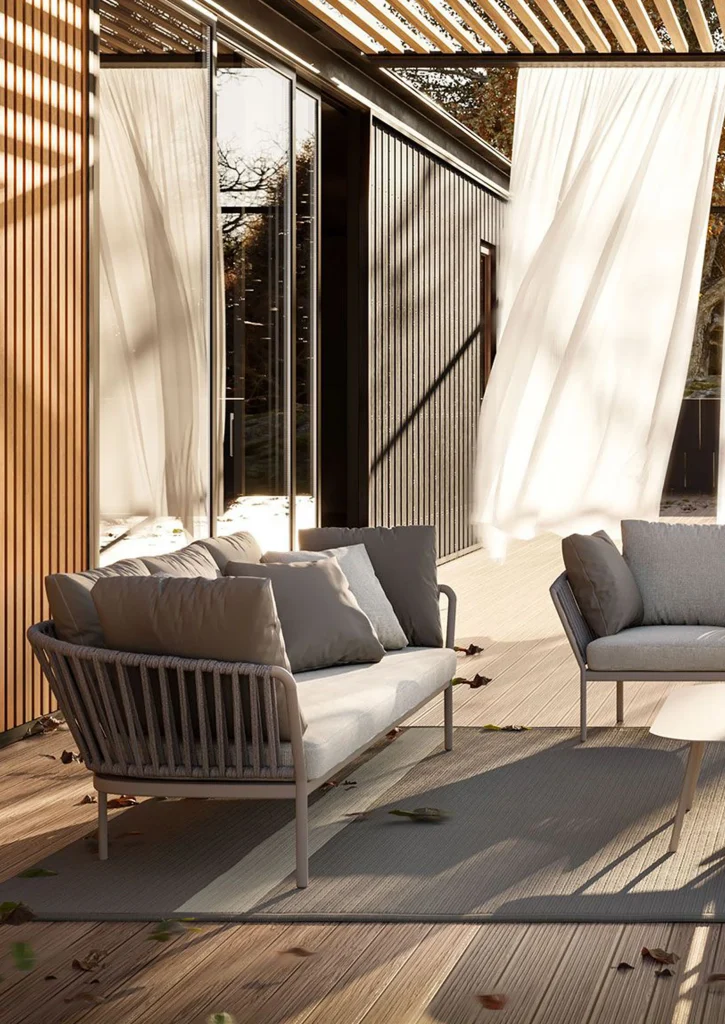 Arredi, illuminazioni e accessori pensati, progettati e realizzati per sfidare gli agenti atmosferici e resistere e perdurare alle intemperie, agli sbalzi termici estivi ed invernali. Che si tratti di un giardino, di una veranda, di un balcone o di una terrazza, ogni spazio aperto è il luogo ideale per distendersi e ritrovarsi.